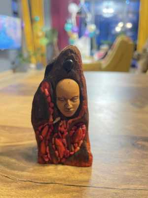 Оберег Феникс. Кора, Камень натуральный гранат, коралл, глина.