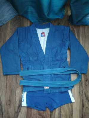 Самбовка р. 40,цвет синий(куртка, шорты, пояс), в хорошем состоянии. Не дорого.