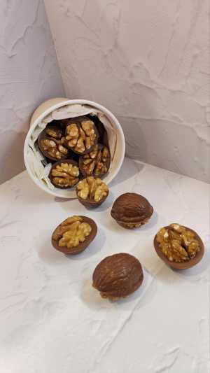 Вкуснейший молочный шоколад, внутри которого спряталась вяленая сладкая клюква, а сверху его закрывает половинка грецкого...