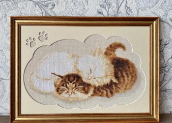 Новая готовая картина крестиком. В профессионально выполненном багете и паспарту.