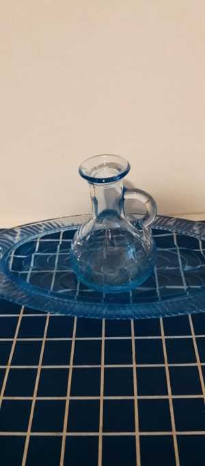 Набор из голубого стекла. Соусник и блюдо. Стоимость за набор из 2-х предметов.