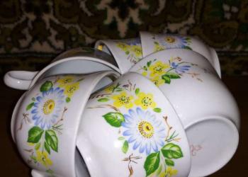 Сервиз чайный. В использовании не был. Тарелочки 17см.-6шт. Кружки 200мл.-6шт. Сахарница и заварочный чаиничек.